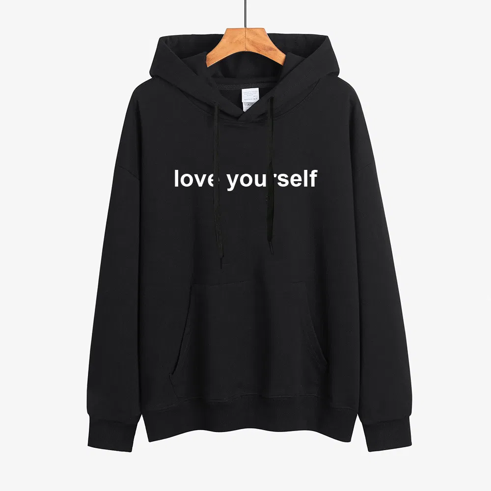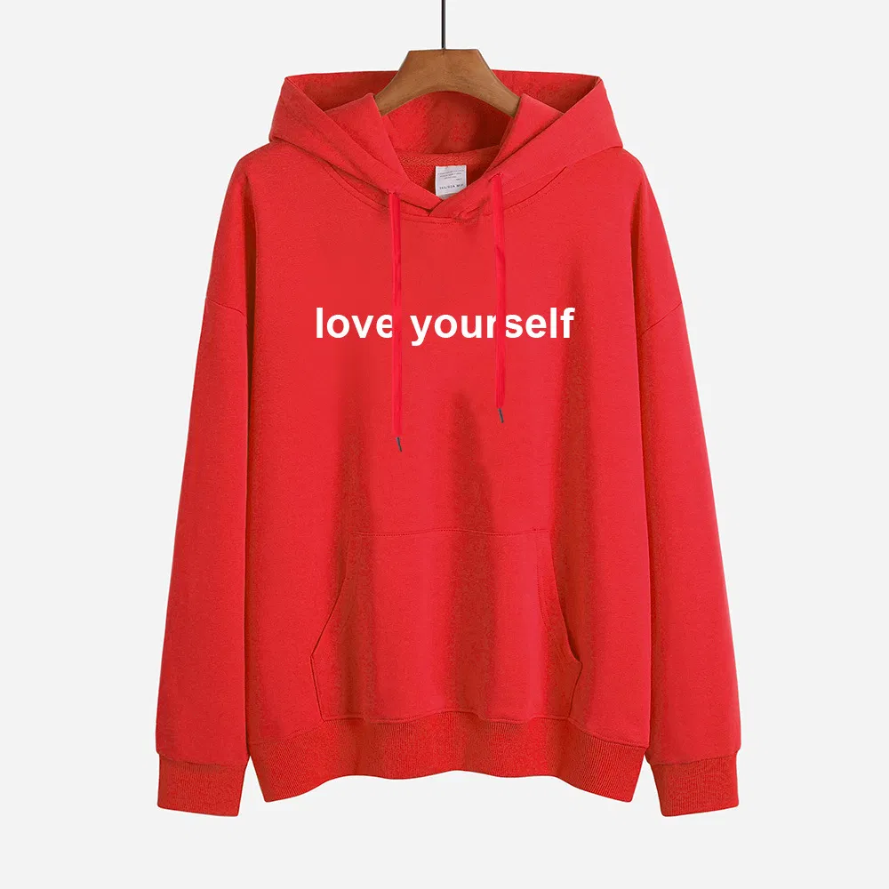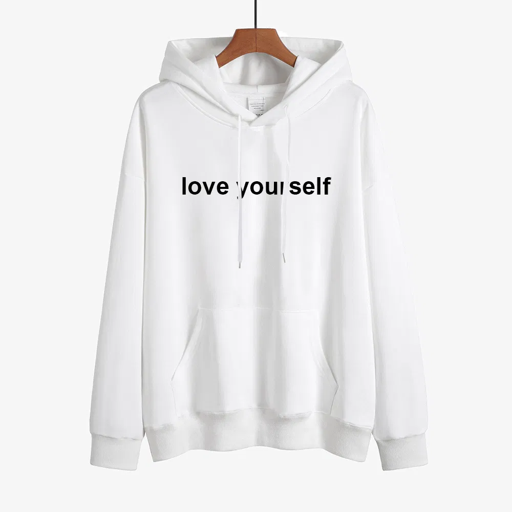 Impresión de Letras Nueva Moda Con Capucha de Manga Larga Cómoda Camisa de Algodón de Lana Lisa Con Capucha de Ocio