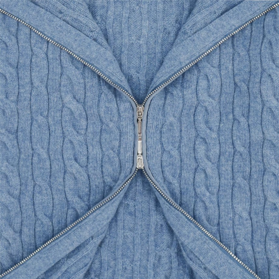 Suéter de Punto Personalizado de Invierno para Mujer, Cárdigan Azul de Manga Larga con Cremallera, Prendas de punto
