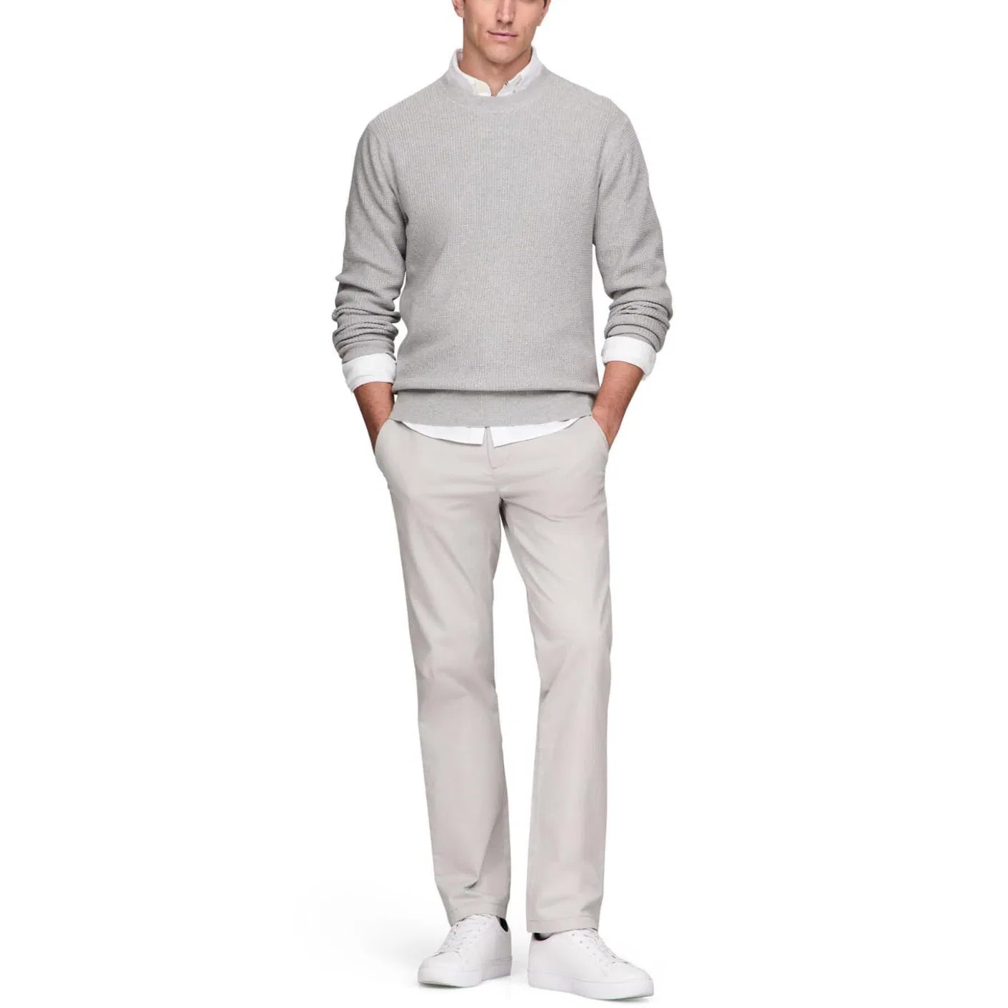 Suéteres de cuello redondo de punto Waffle de OEM Factory Men′s Jersey ligero con logotipo bordado