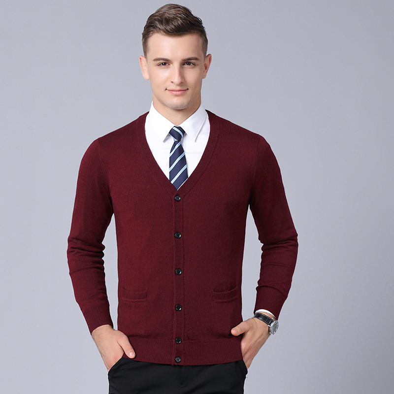 Cárdigan con cuello en V de Lana para Hombre′s-Prendas de punto Delanteras Abiertas de Manga Larga de Peso Regular para Capas & amp; Casual de negocios