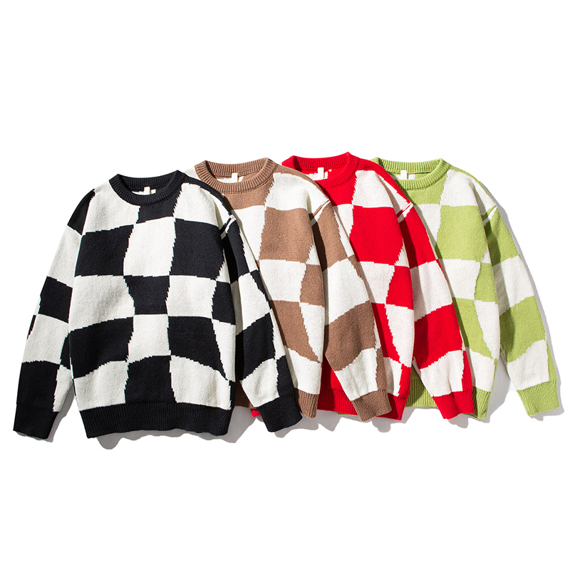 ODM Nuevo Suéter de Manga Larga con Diseño de Tartán Informal Personalizado para Mujer, Tejido de Punto, Cuello Redondo, Tallas Grandes para la Temporada de Otoño