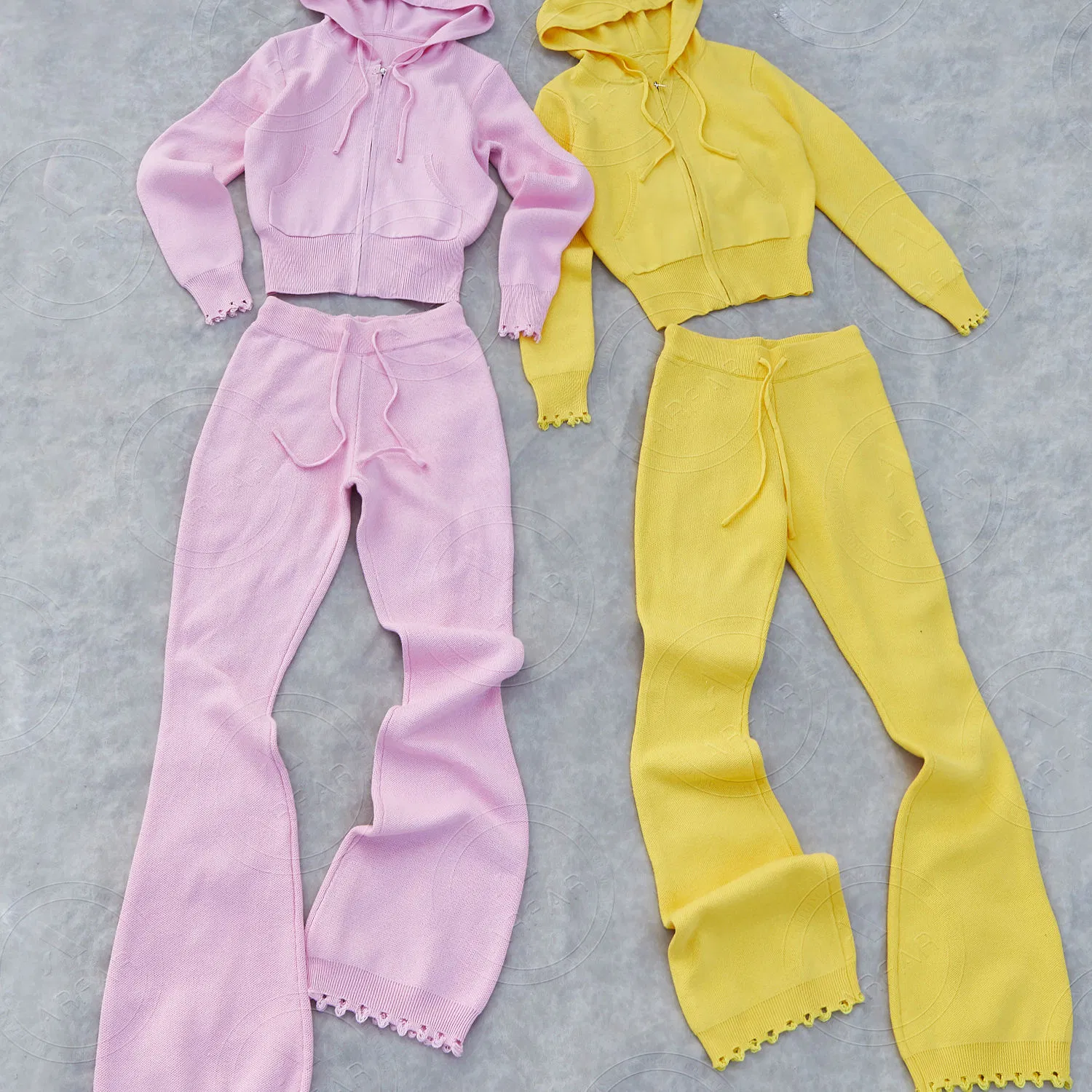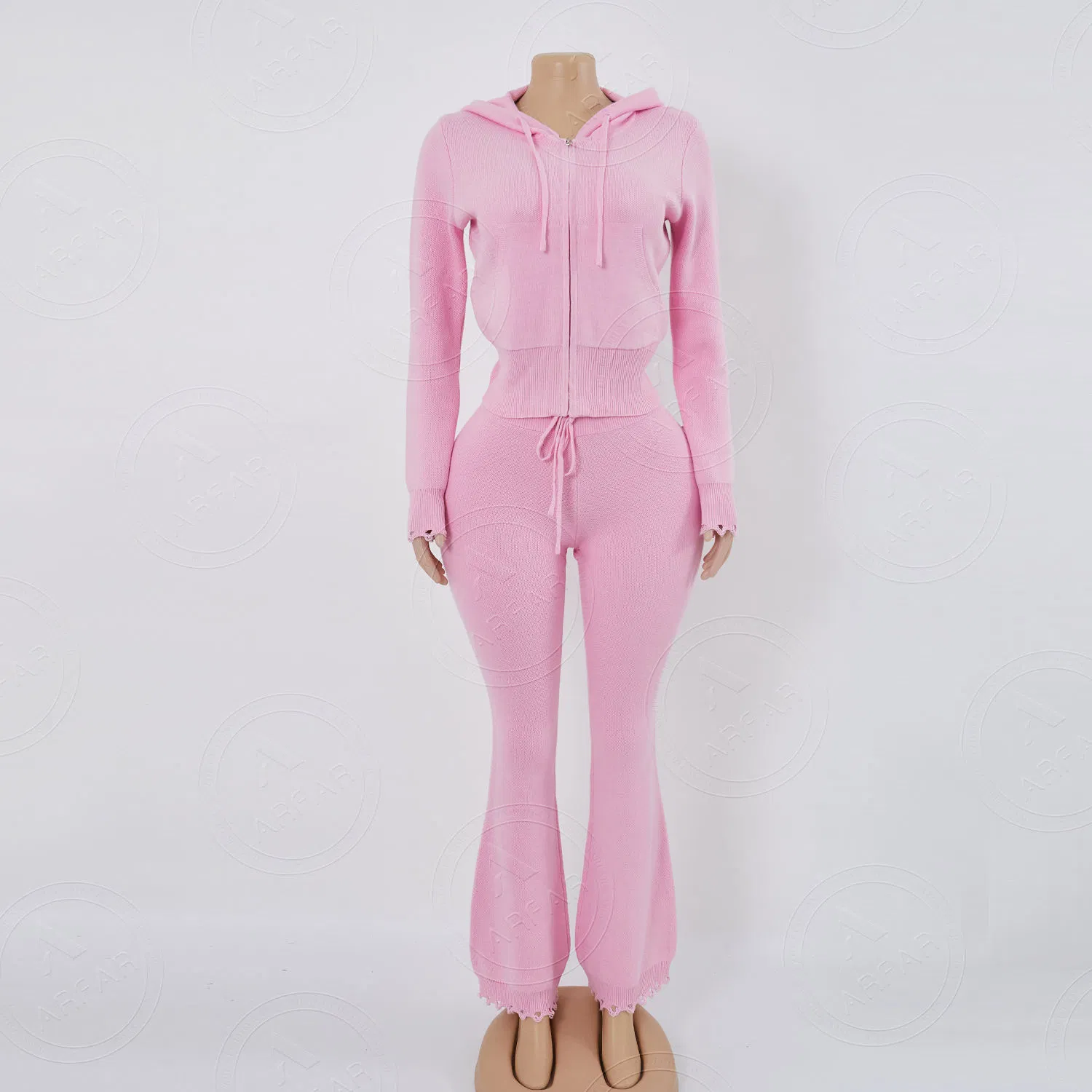 Suéter con Capucha de Manga Larga de Color Blanco Informal de Invierno para Mujer y Pantalones Acampanados Conjunto de Prendas de punto Conjunto de Entrenamiento de Dos Piezas para Mujer