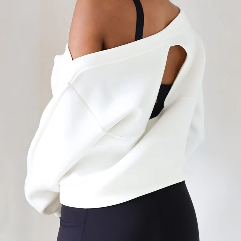 Jersey Liso de Manga Larga con Hombros descubiertos para mujer, Sudadera de gran tamaño de 400 GSM, Forro polar para Invierno
