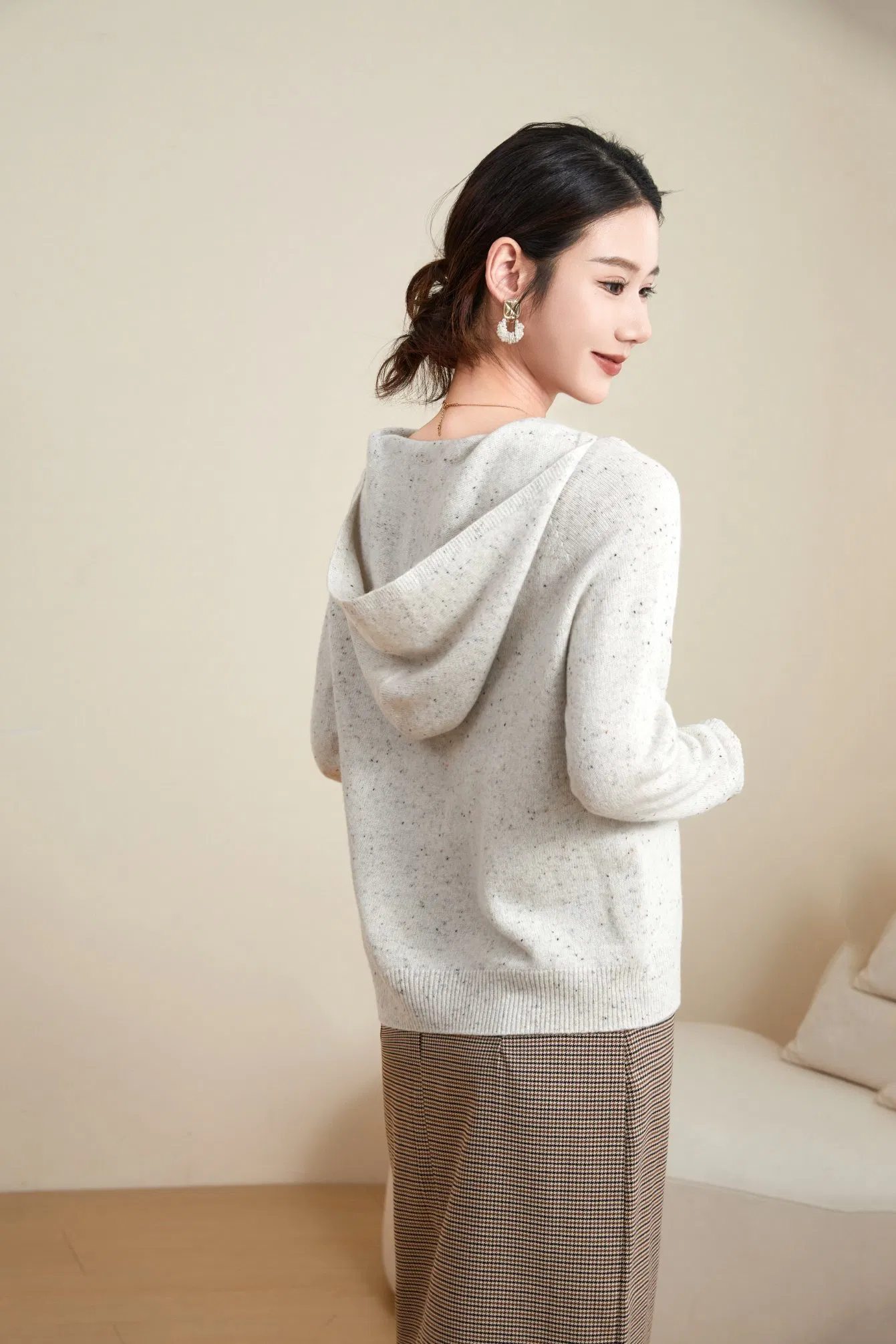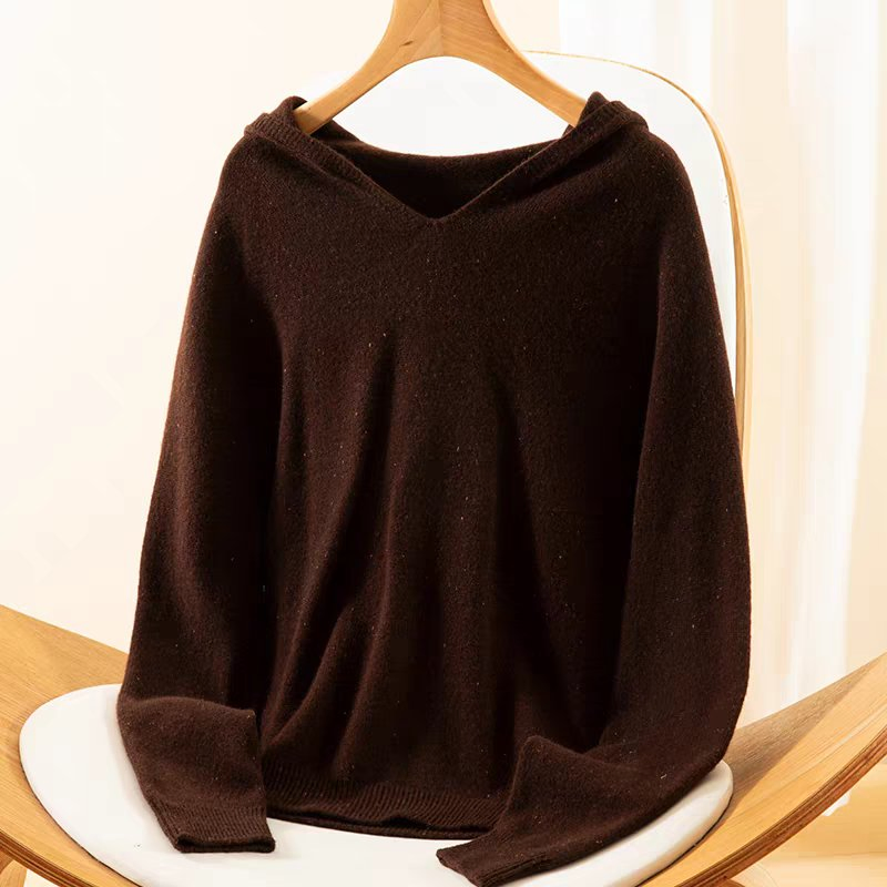 Suéter casual con capucha de Lana 100% Sólido de Otoño e Invierno para mujer & prime;s