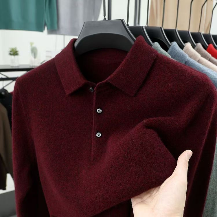 Suéter de Polo de punto Sólido Clásico para hombre′s – Jersey casual de negocios