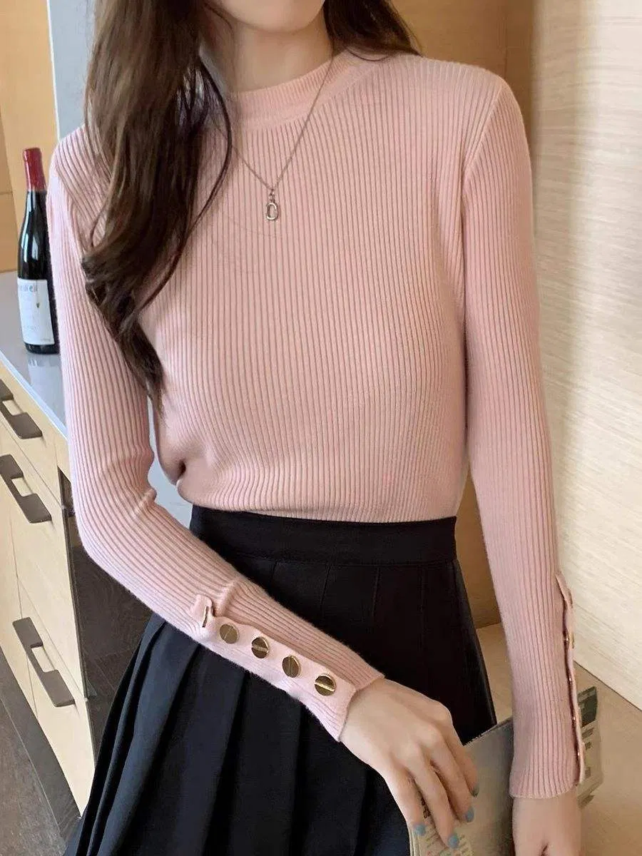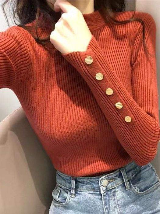 Suéter de Punto de Otoño / Invierno Suéter de Manga Larga de Estilo Extranjero de Medio Cuello Alto