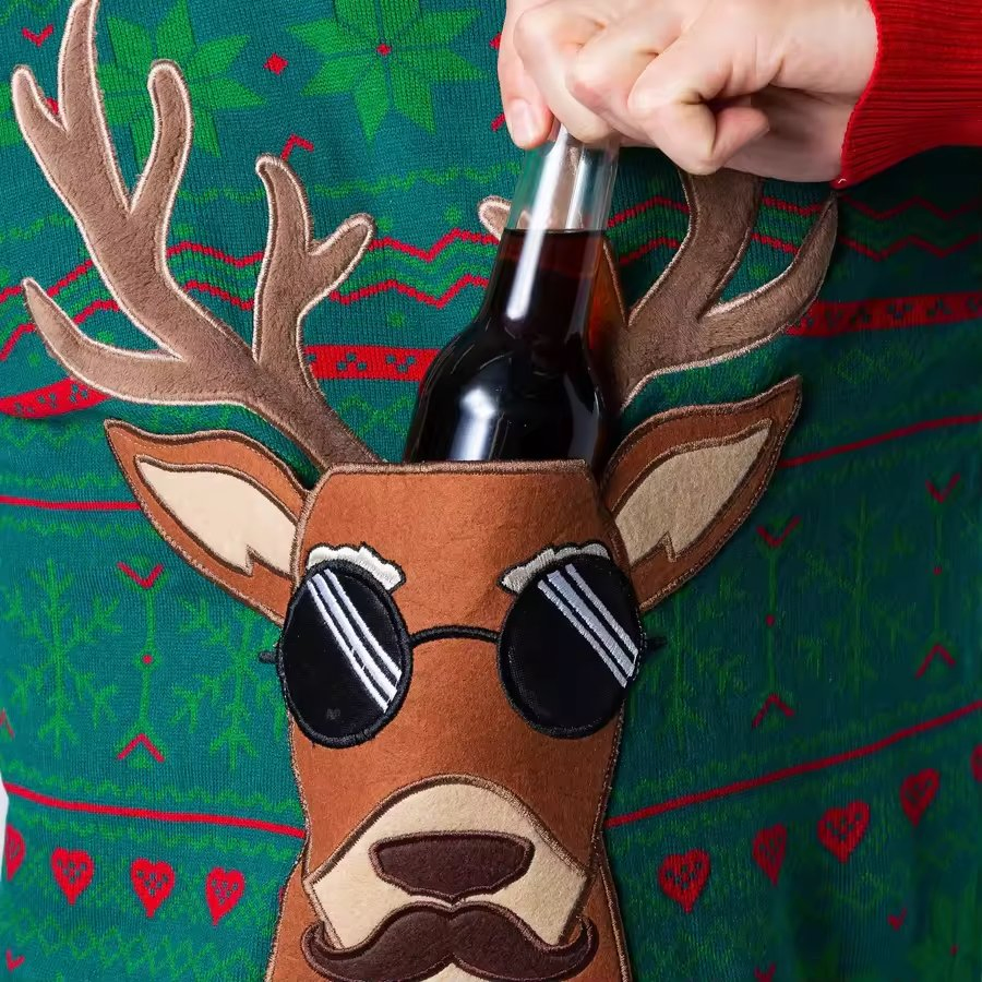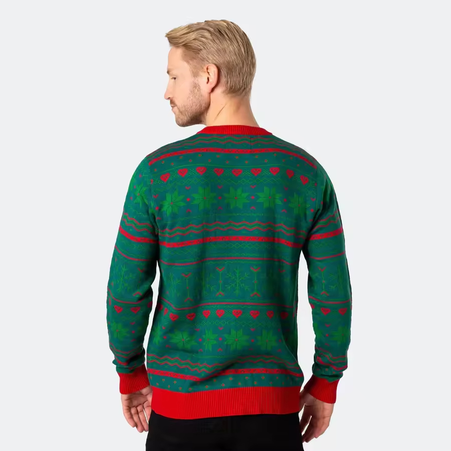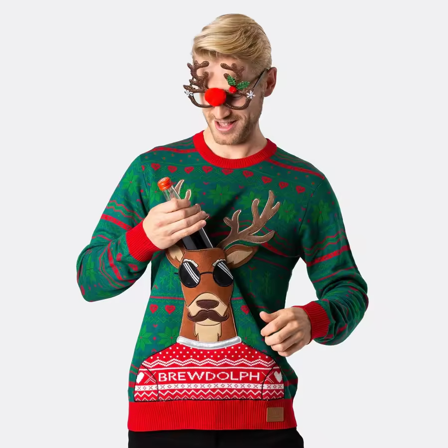 Jersey de Navidad Jacquard Feo de Punto Personalizado para Hombre y primer Jersey de Bolsillo de Reno Verde de Moda