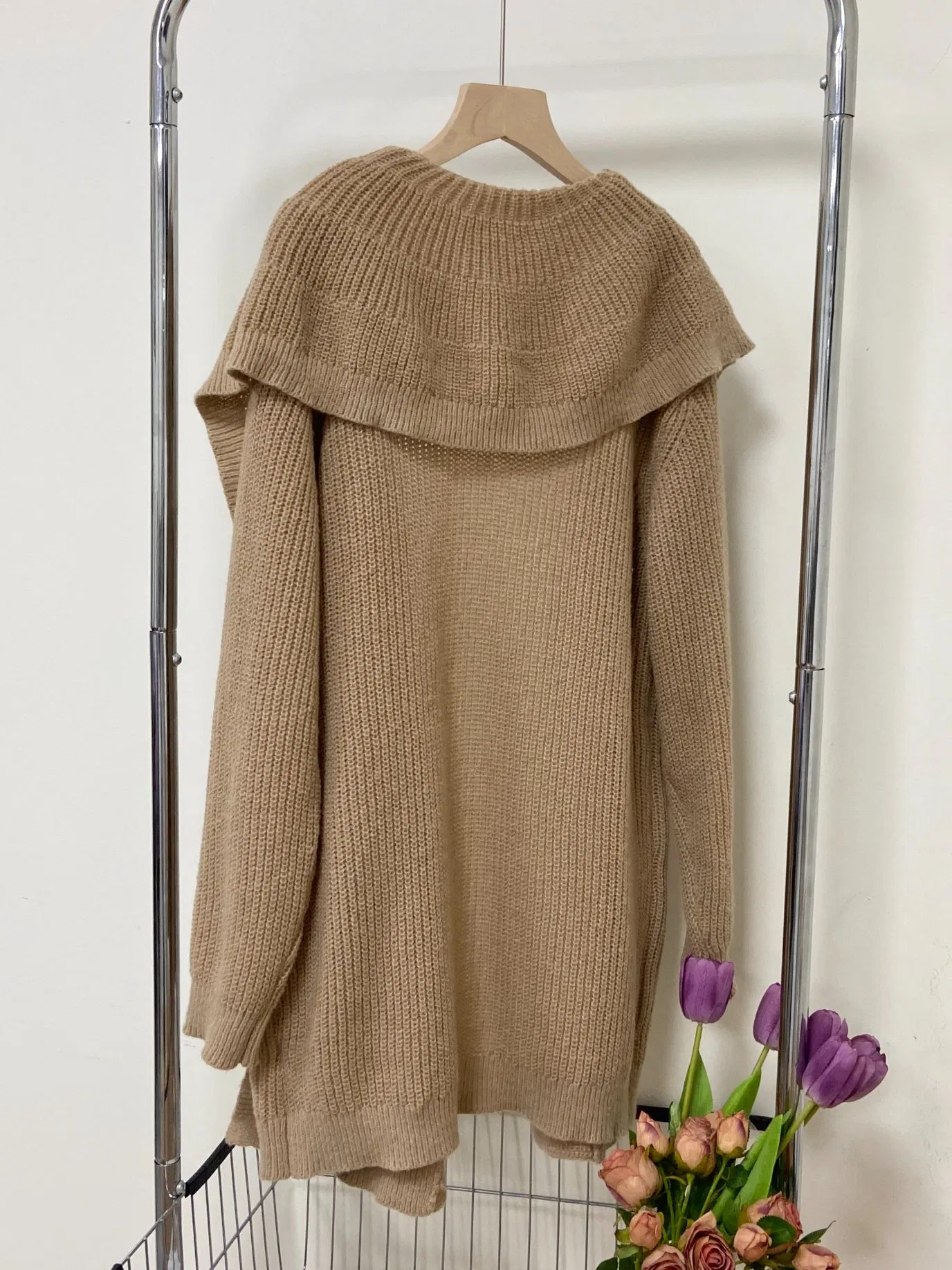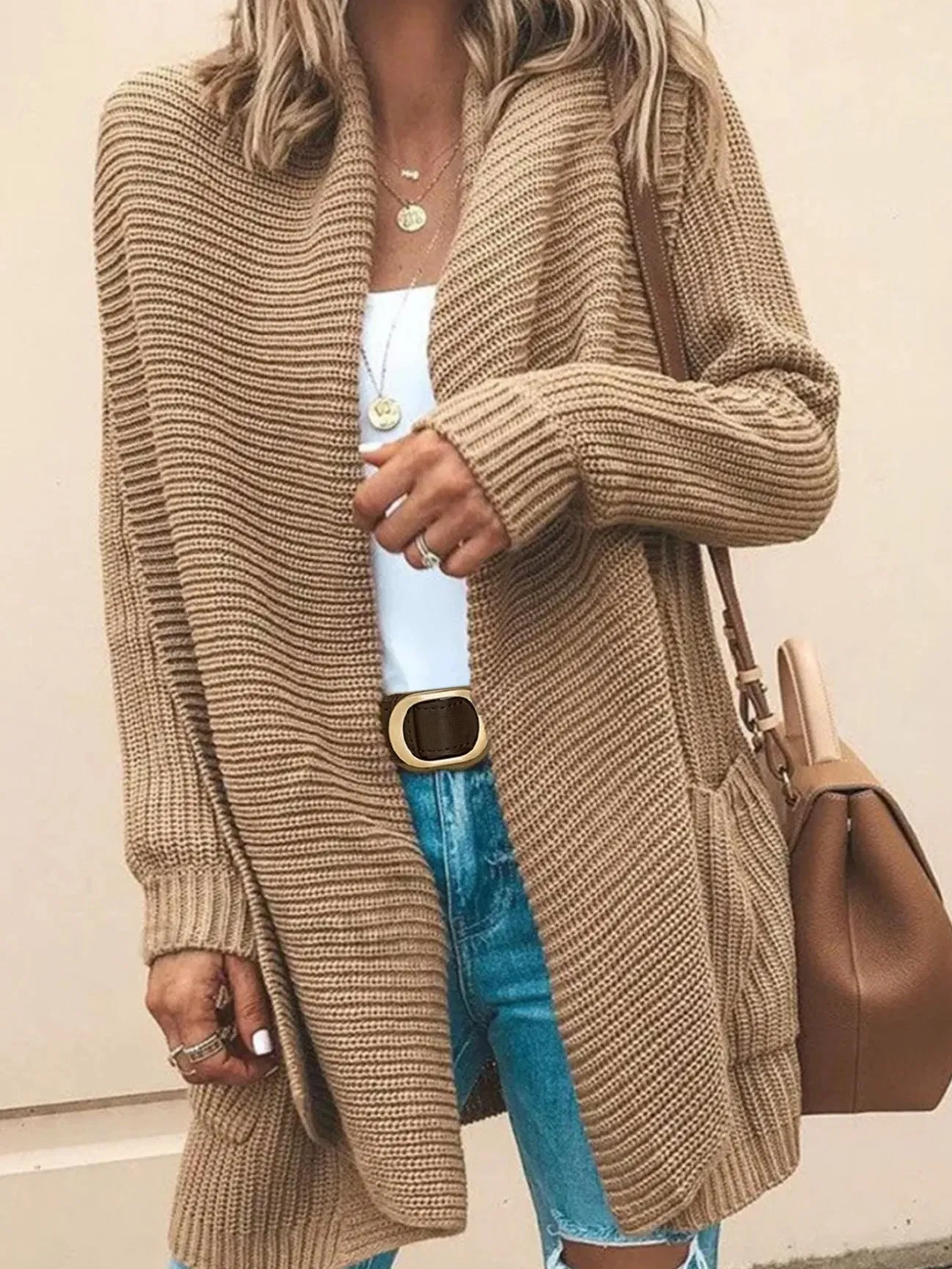 Cárdigan de manga larga para Mujer′s para Otoño e Invierno, Cómodo y Esponjoso, de Color Sólido, Estilo Informal, Suéter de cuello grande