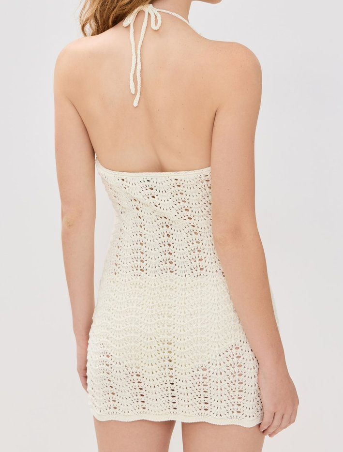 Vestido sin mangas con Escote Halter de Ganchillo Súper Elástico Ligero para Mujer, con Corbata en la espalda