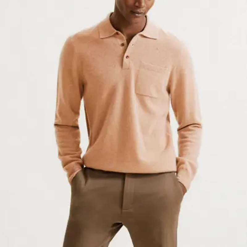 Suéter de Cachemira en Blanco al por Mayor con Cuello de Polo Jersey de Cachemira Italiano de Diseñador para Hombre