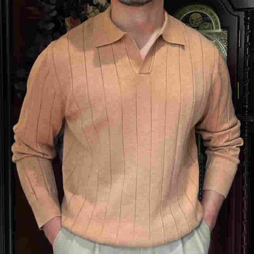 Suéteres de polo de punto sólido Old Money Personalizados para hombres y prime;Jersey abierto con cuello en V