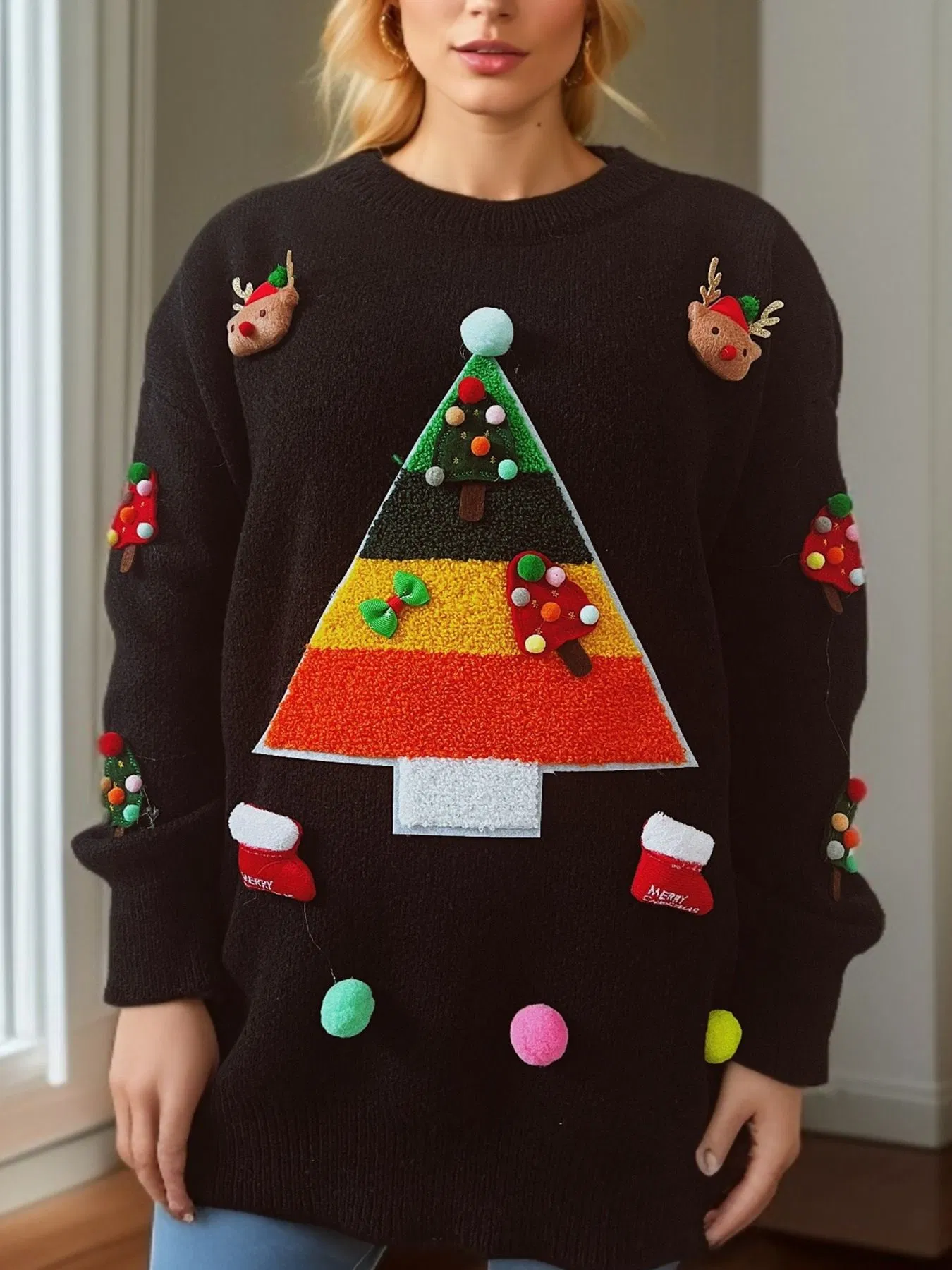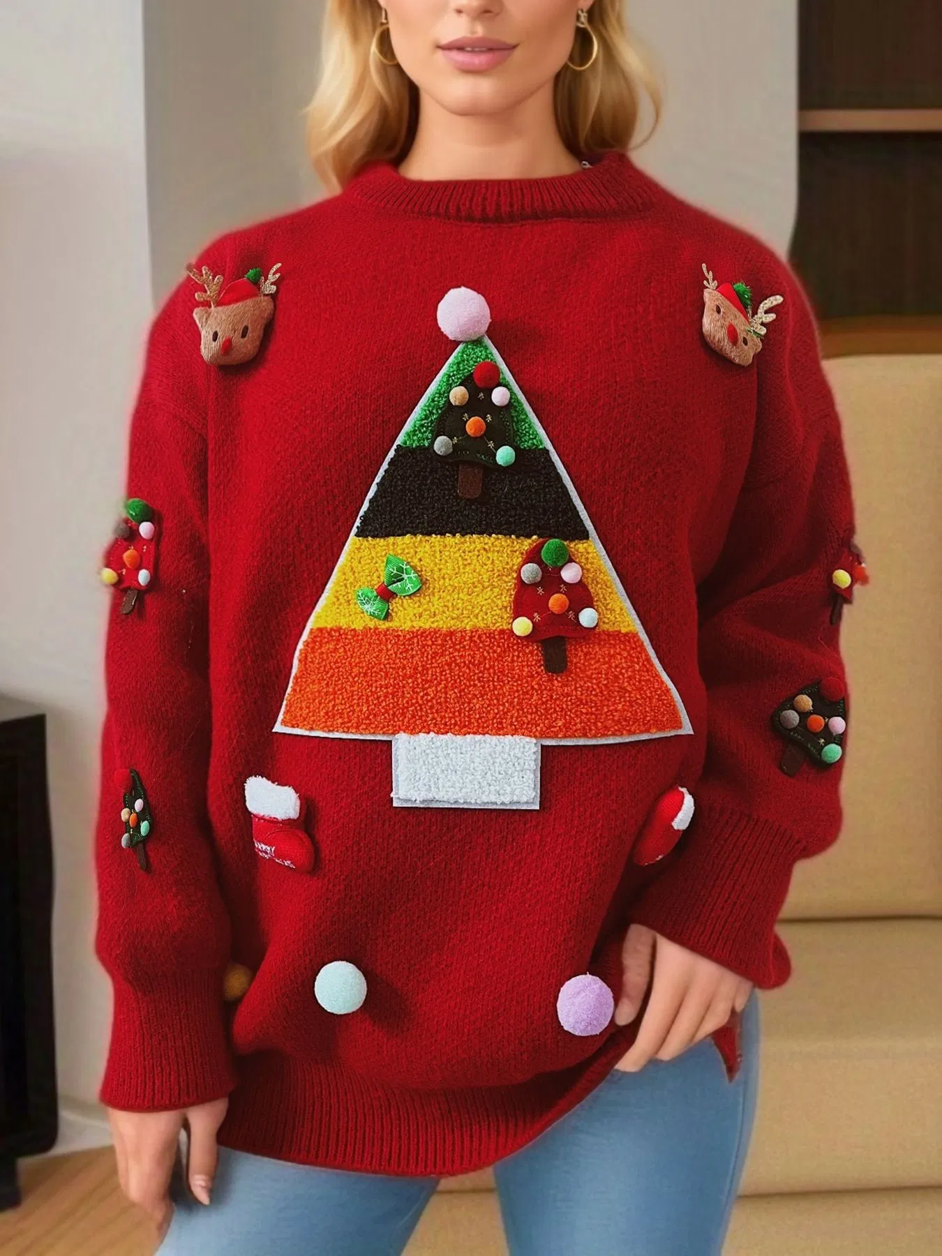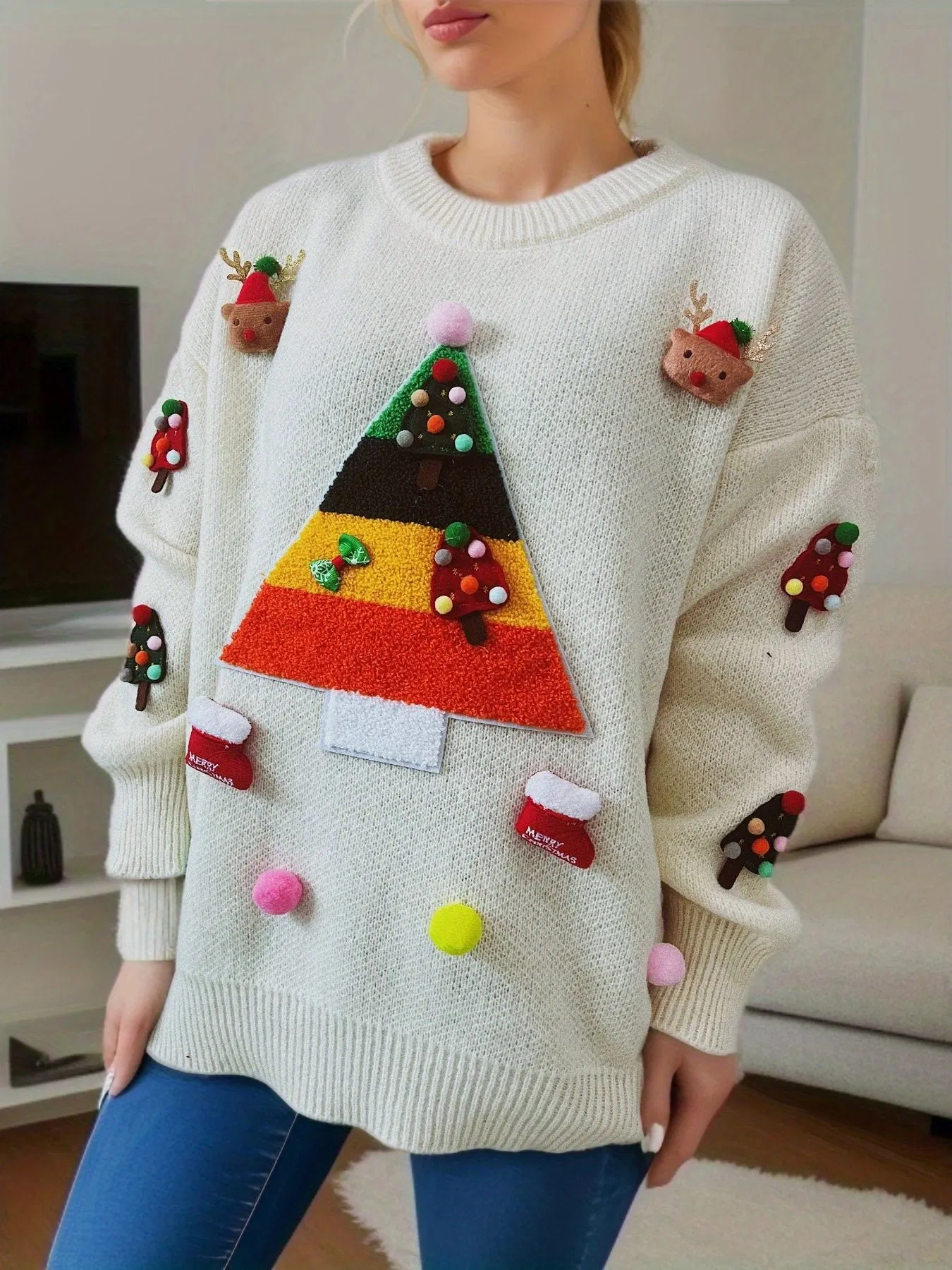Suéter de Navidad Jersey de Decoración Tridimensional Jacquard de Árbol de Navidad Prendas de punto para Mujer & prime;s