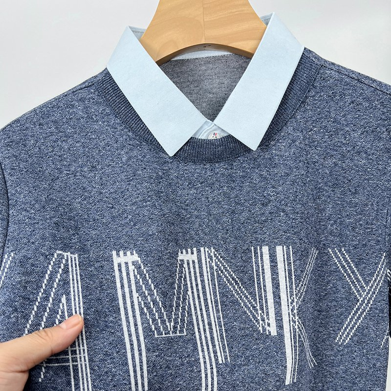 Suéter de Dos Piezas de Imitación de Algodón Ligero para Hombre′s-Prendas de punto Finas Informales para Primavera / Otoño, Aspecto Moderno en capas