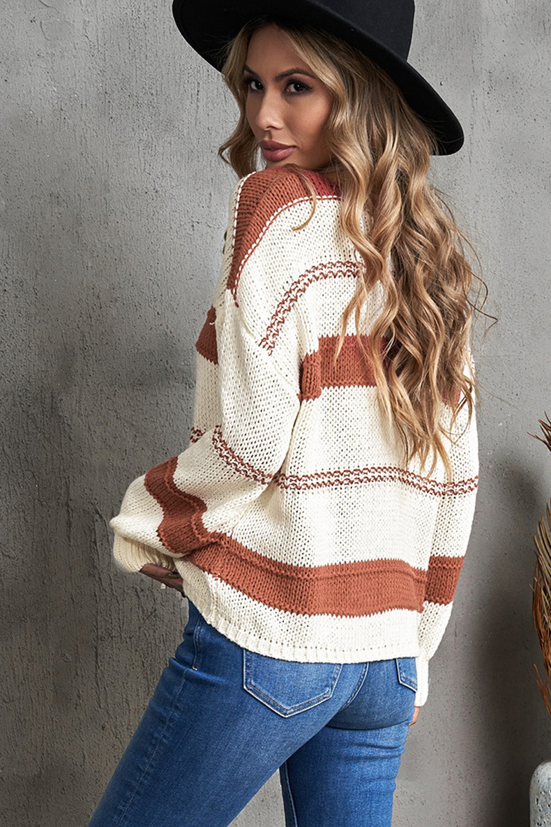 Suéter Desgastado de Punto de Lana Borrosa de Manga Larga con Cuello Redondo A Rayas de Mohair para Hombre