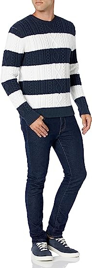Suéter de jersey para hombre′ s Cuello redondo Logotipo Personalizado de Rayas Clásicas