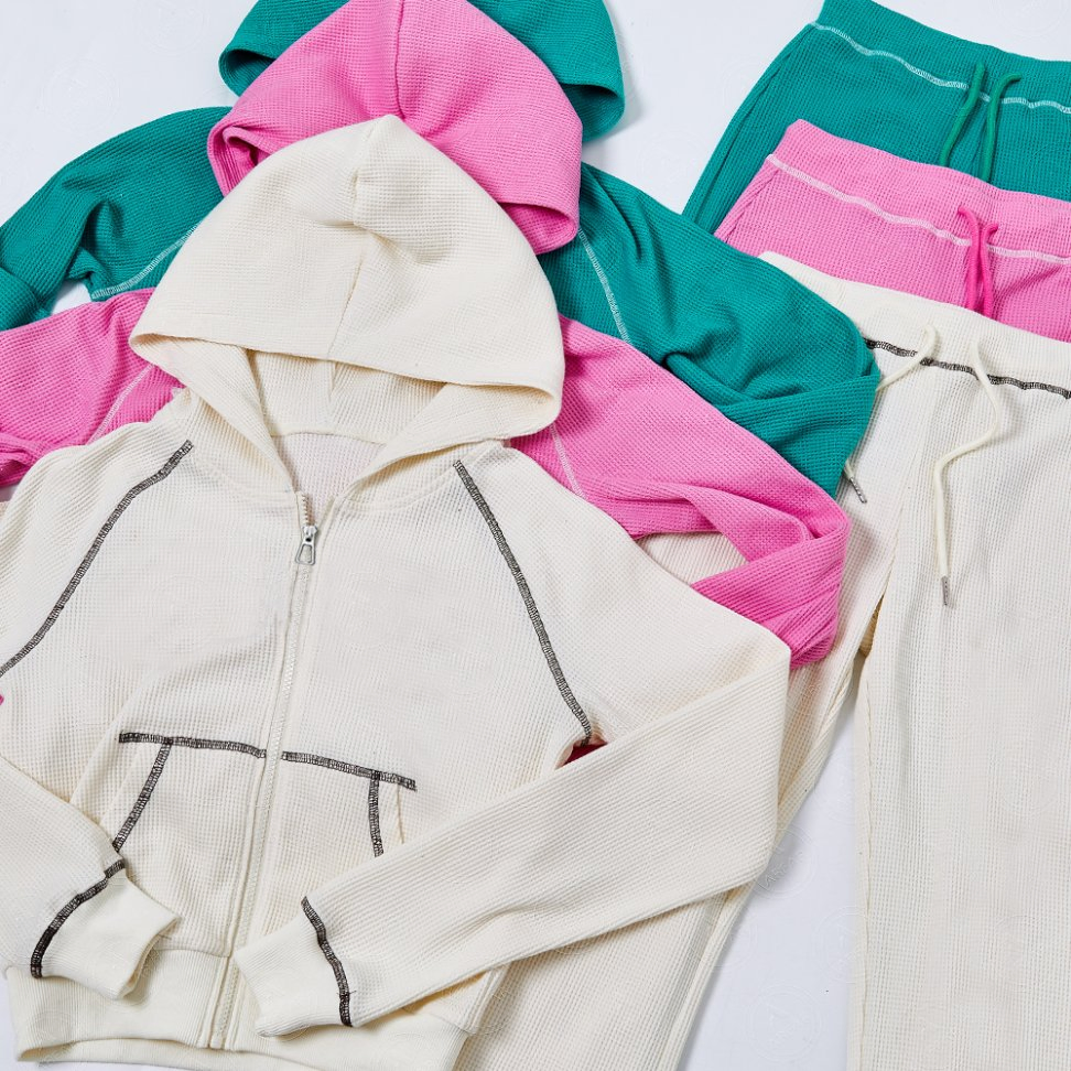 Conjuntos de Punto de Gofres para Mujer, Chándales, Jogger, Conjunto de 2 Piezas, Sudadera con Capucha de Algodón, Chándales, Conjunto de Salón para Mujer