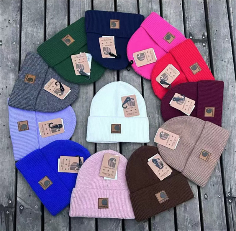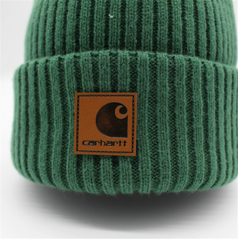 Nuevo Gorro de Invierno Cálido Unisex Gorro de Invierno Parche de Cuero Gorro de punto para Mujer Gorro para Hombre